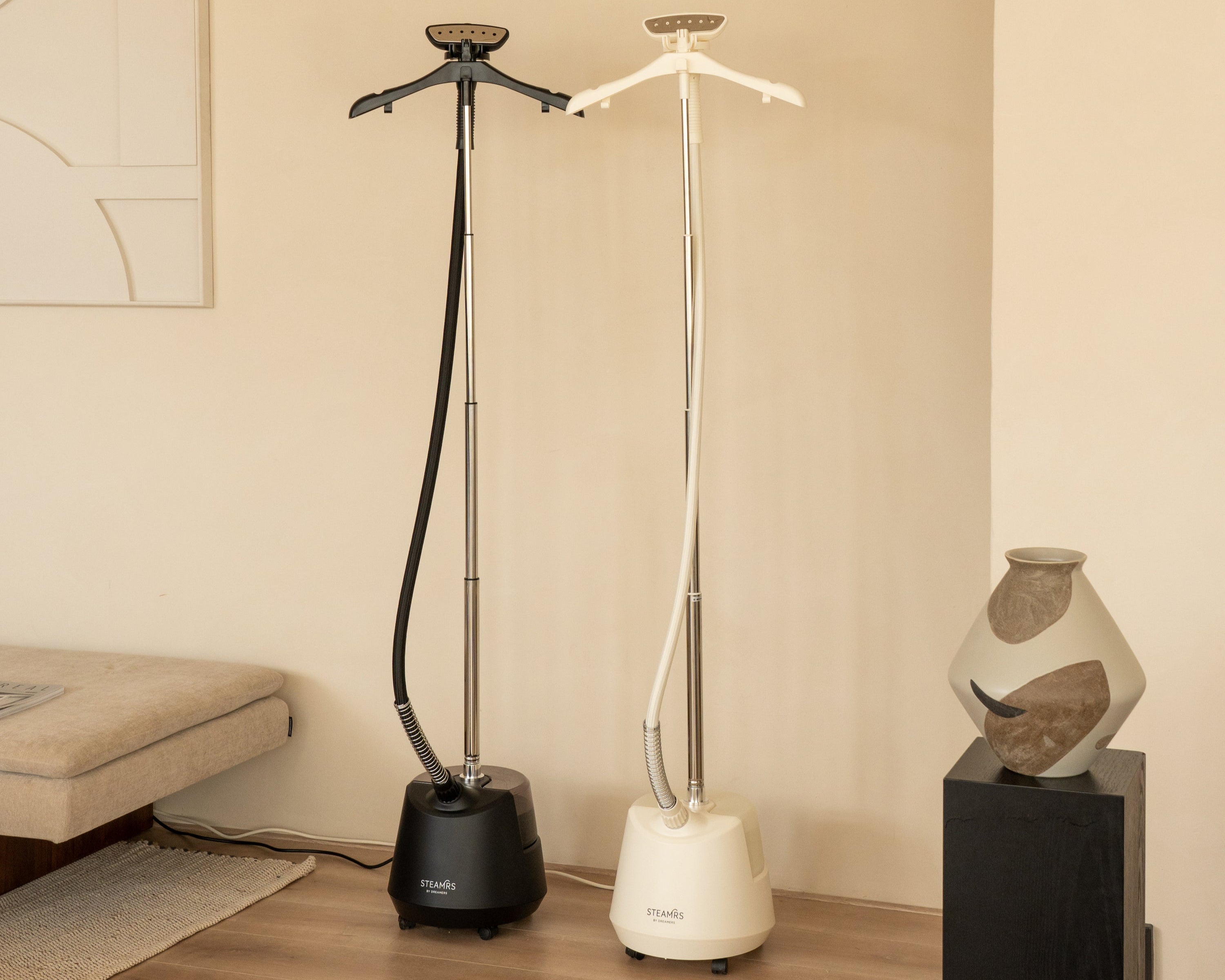 The result: our first upright STEAMRS garment steamers. Made for professionals but also perfect for home use—ideal for anyone who wants to steam more than just one or two garments.